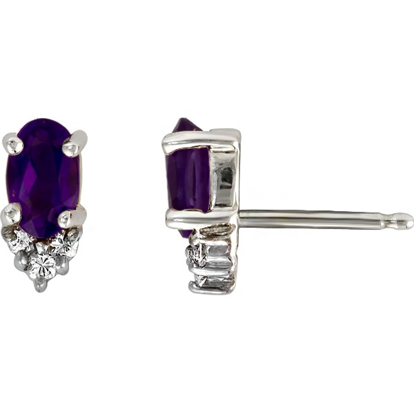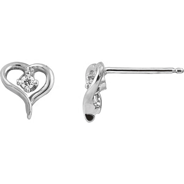 14k White Gold Heart 4 Prong Stud .03ct Total Natural Diamond Earrings