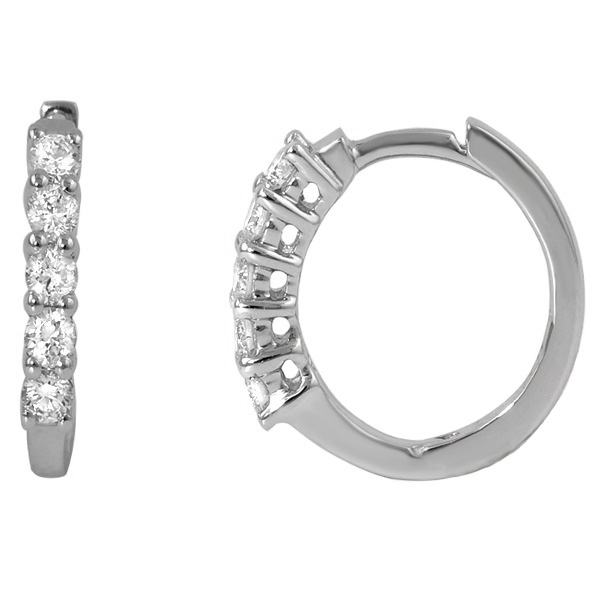 14k White Gold 5 prong set Medium Hoop .33ct Total Natural Diamond Earrings