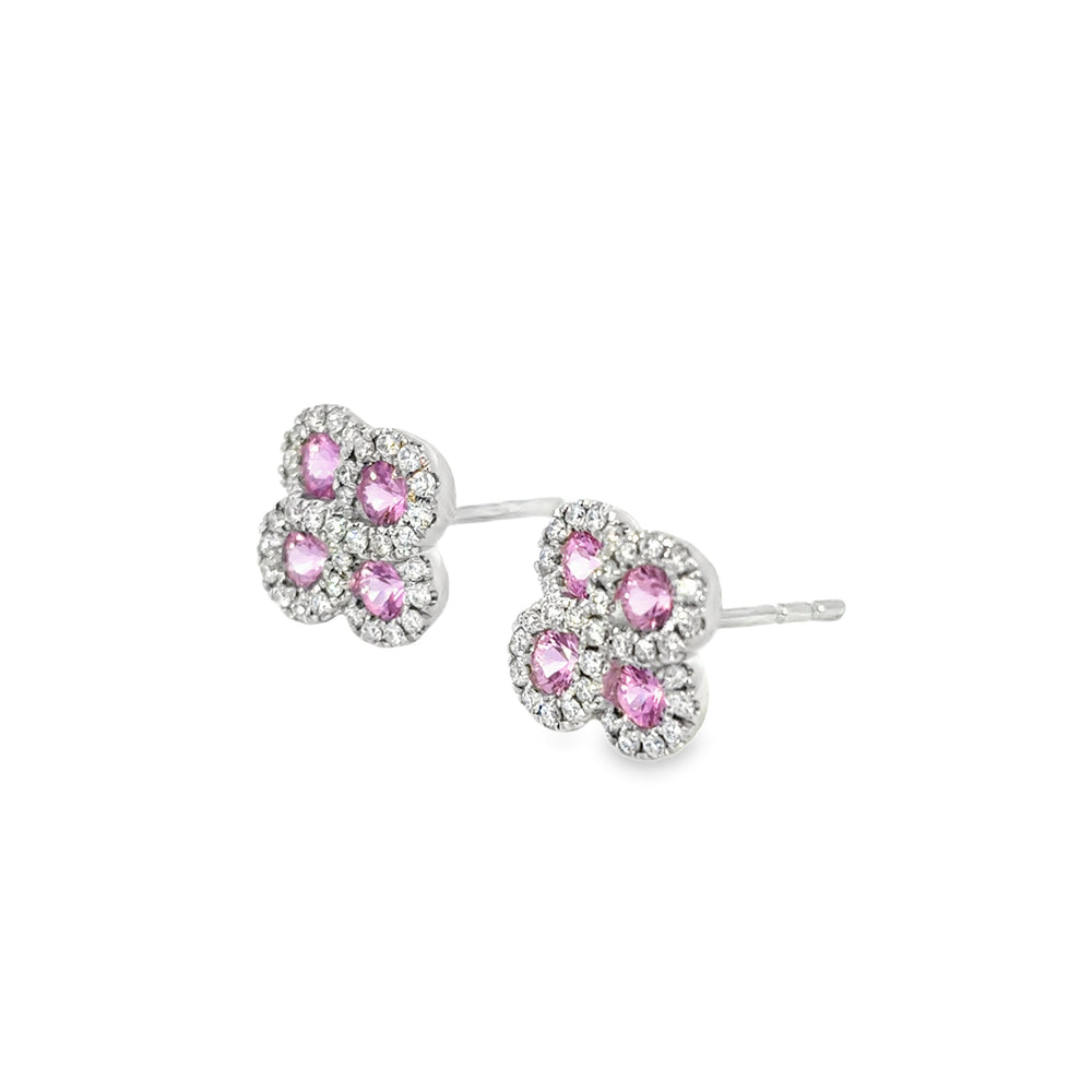 14k White Gold Round Pink Sapphire 4 Prong Stud Earrings