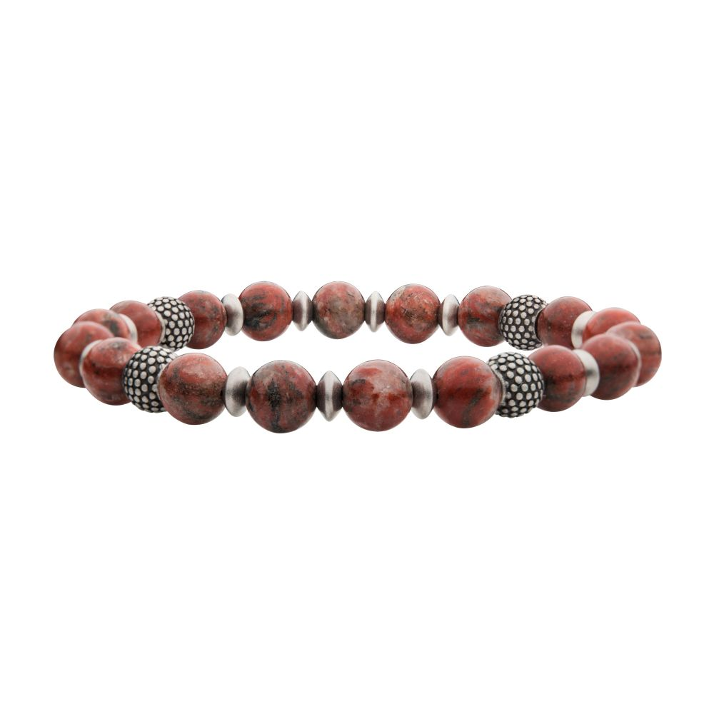 Men's 8.5mm Rainbow Jasper Stones with Black Oxidized Beads Bracelet, 7.5" long.